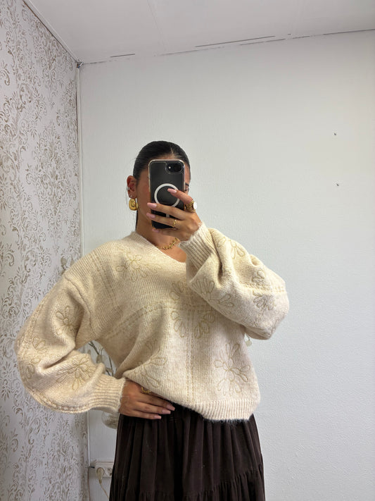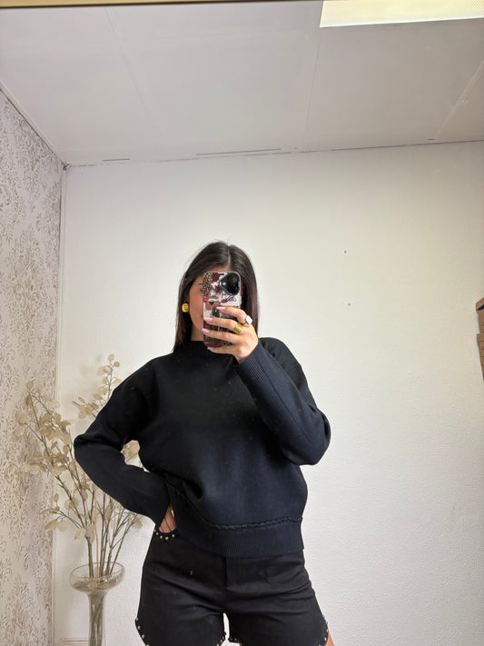 Malha entrelaçada com Decote em V
