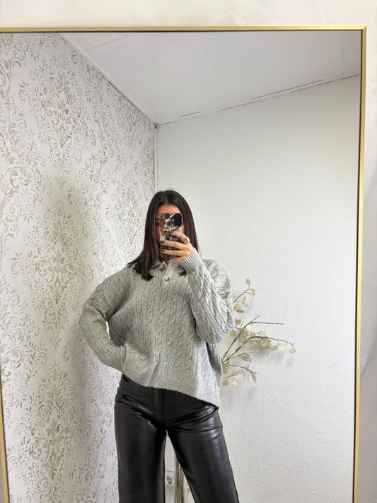 Malha entrelaçada com Decote em V